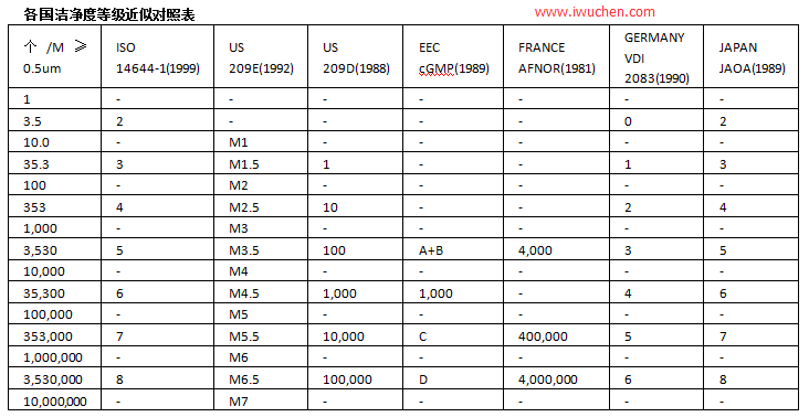 GMP車間ABCD級(jí)潔凈等級(jí)標(biāo)準(zhǔn)表參考: